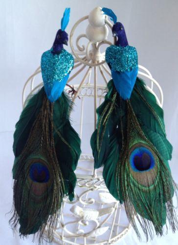 PEACOCK Wedding Cake Toppers Glittery Iridescent Blue Teal